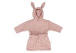 Jollein badjas roze. Deze grappige badjas is verkrijgbaar in twee maten en heeft grappige oortjes op de capuchon.