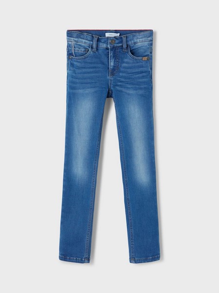 Name it jeans Nkmtheo dnmclas medium blue denim. Stoere spijkerbroek met extra slimfit pasvorm in de taille en extra slimfit op het been.