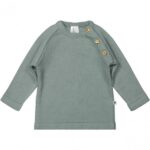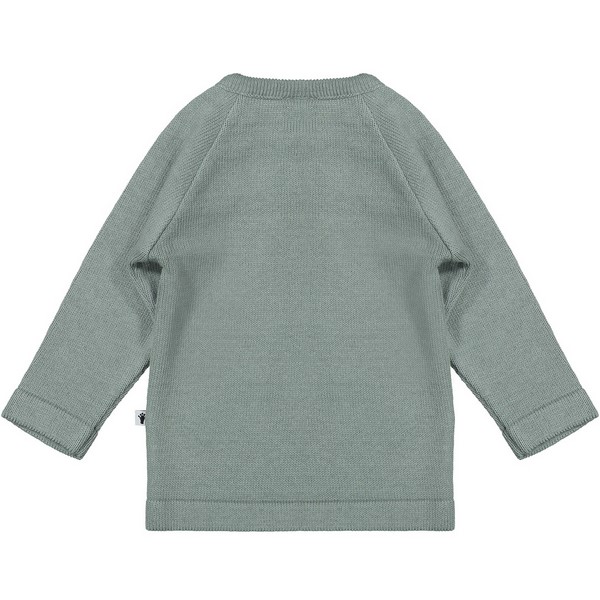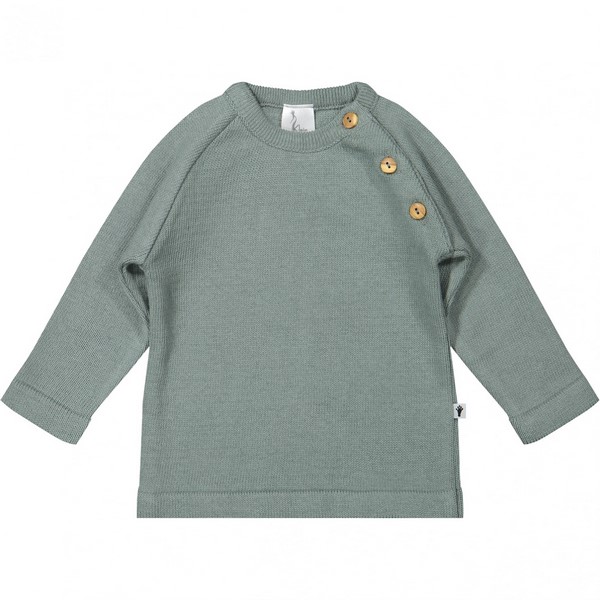 Klein trui KN102 stone green. Prachtig fijngebreide trui met knoopjes bij de hals.