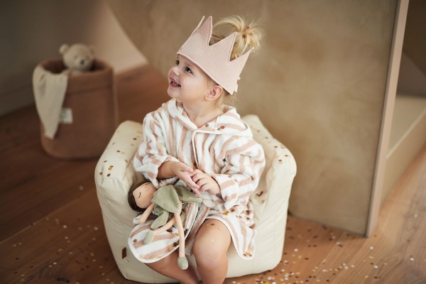 Jollein verjaardagskroon roze. Het kroontje kun je aan de achterzijde vaststikken met het touwtje. Hierdoor is het kroontje geschikt voor kindjes van verschillende leeftijden.